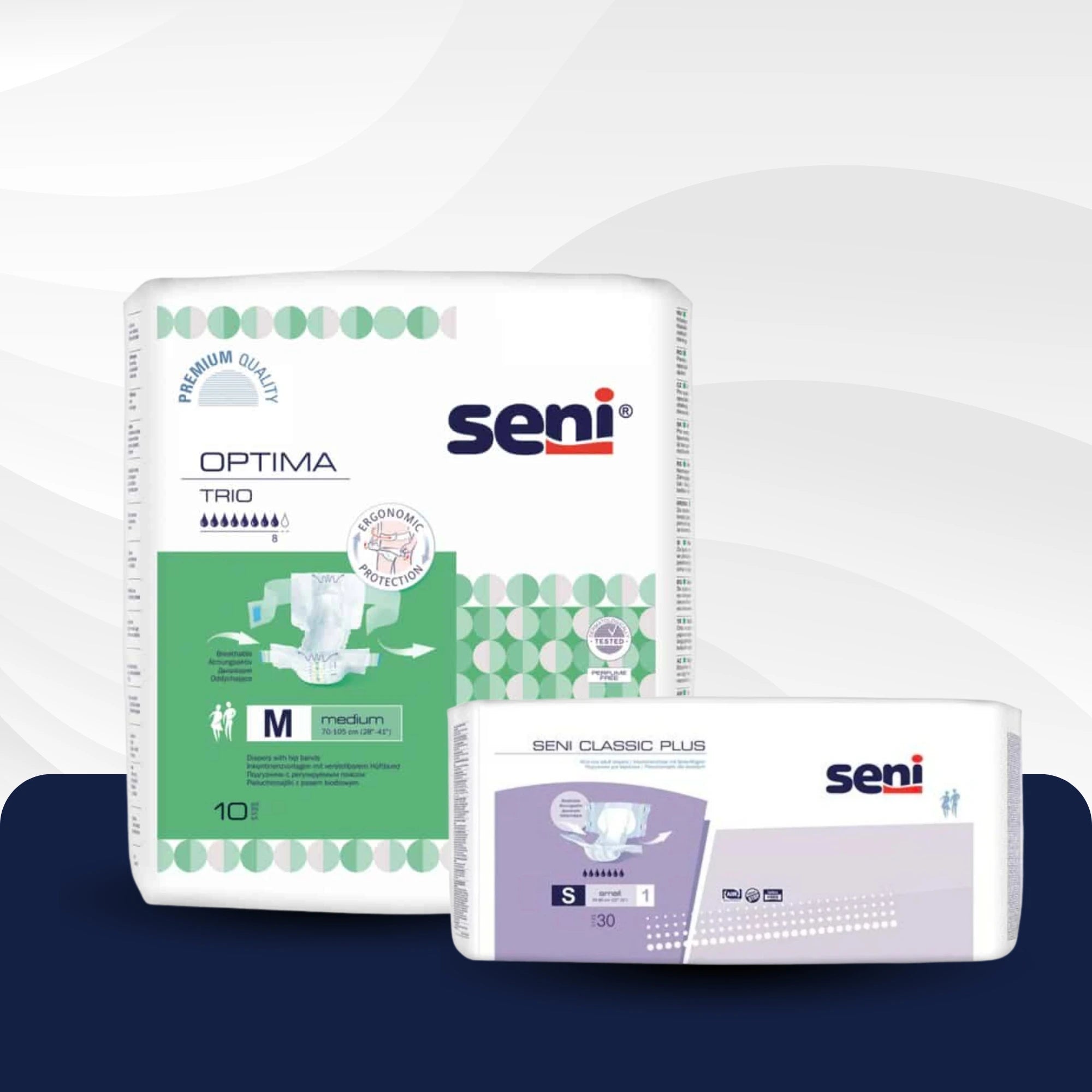 Η Seni έχει αναπτύξει μια ευρεία γκάμα προϊόντων που είναι ειδικά προσαρμοσμένα στις ανάγκες των ανθρώπων με ακράτεια καθώς και στις απαιτήσεις των φροντιστών.