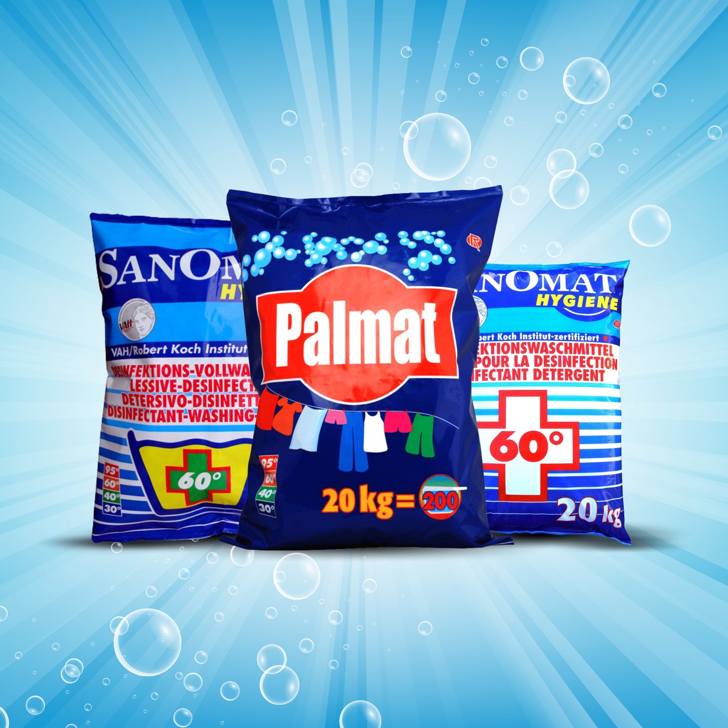 Το απολυμαντικό απορρυπαντικό Rösch Sanomat είναι ιδανικό για ευαίσθητους υγειονομικά τομείς – όπως σε μονάδες φροντίδας ή ιατρικές επιχειρήσεις. Συνδυάζει τη δύναμη πλύσης και απολύμανσης σε ένα βήμα και λειτουργεί αξιόπιστα κατά των βακτηρίων και των μικροβίων. Το Palmat Universalwaschmittel είναι πολυλειτουργικό και καθαρίζει ακόμη και έντονα λερωμένα ρούχα σε βάθος, χωρίς να φθείρει τα χρώματα ή τα υφάσματα. Το απορρυπαντικό πιάτων Danny Lemon Power πείθει με ισχυρή δύναμη διάλυσης λίπους και ευχάριστο άρωμα – ιδανικό για κουζίνες, εστίαση και μεγάλες οικιακές μονάδες.