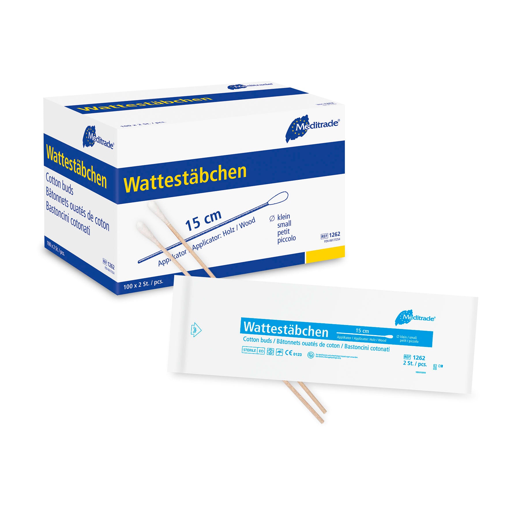 Βαμβακερά μάκτρα συσκευασμένα αποστειρωμένα σε συσκευασίες των 2, μήκος: 15 cm, μικρό κεφάλι, ξύλο | Συσκευασία (200 τεμάχια)